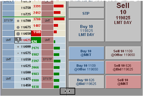 The Order Ticket areas can be re-sized using the splitter bar between the DOM area and the buttons.