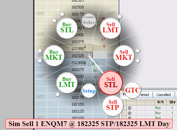 2. Drag the cursor to the circle that identifies the type of order you wish to place. If there are additional options for that order type, smaller circles will be displayed.