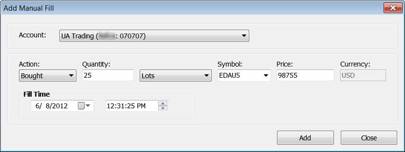 In order to enter manual fills, go to Setup > Preferences > Order & Position Settings and select the Enable Manual Fills check box.