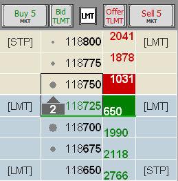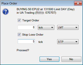 6. Select the stop type for the Stop Loss. In our example, once the buy order is filled, two stop orders are triggered, one at an 8-tick profit (target order) and one at a 5-tick loss (stop loss order).