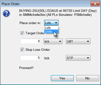 3. If you are trading in units, change Lots to Units, if necessary. It is only necessary if you are enabled to trade in units, and you have not selected the U button.