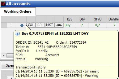 If you are trading with units, then QtyU, UnfilledU and FilledU columns are added to the orders pane:
