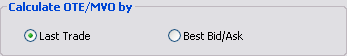 Select whether Open Trade Equity (OTE) and Market Value of Options (MVO) are calculated (by Last Trade or by Best Bid/Ask) by clicking one of the buttons.