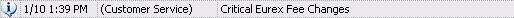 If you receive an Information message, you will see a blinking taskbar button in the Windows taskbar. (This is the bar that contains the Start button and appears by default at the bottom of the desktop.) The message window does not automatically popup.