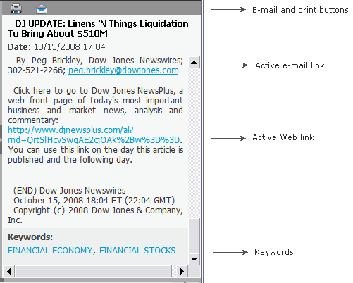 The story viewer displays the story that is selected on the story list. It also has print, e-mail, and font buttons.