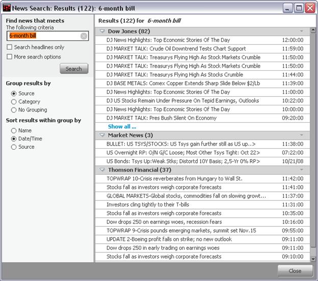 The stories that match your search criteria are listed on the right side of the window. A maximum of 200 results will be displayed.